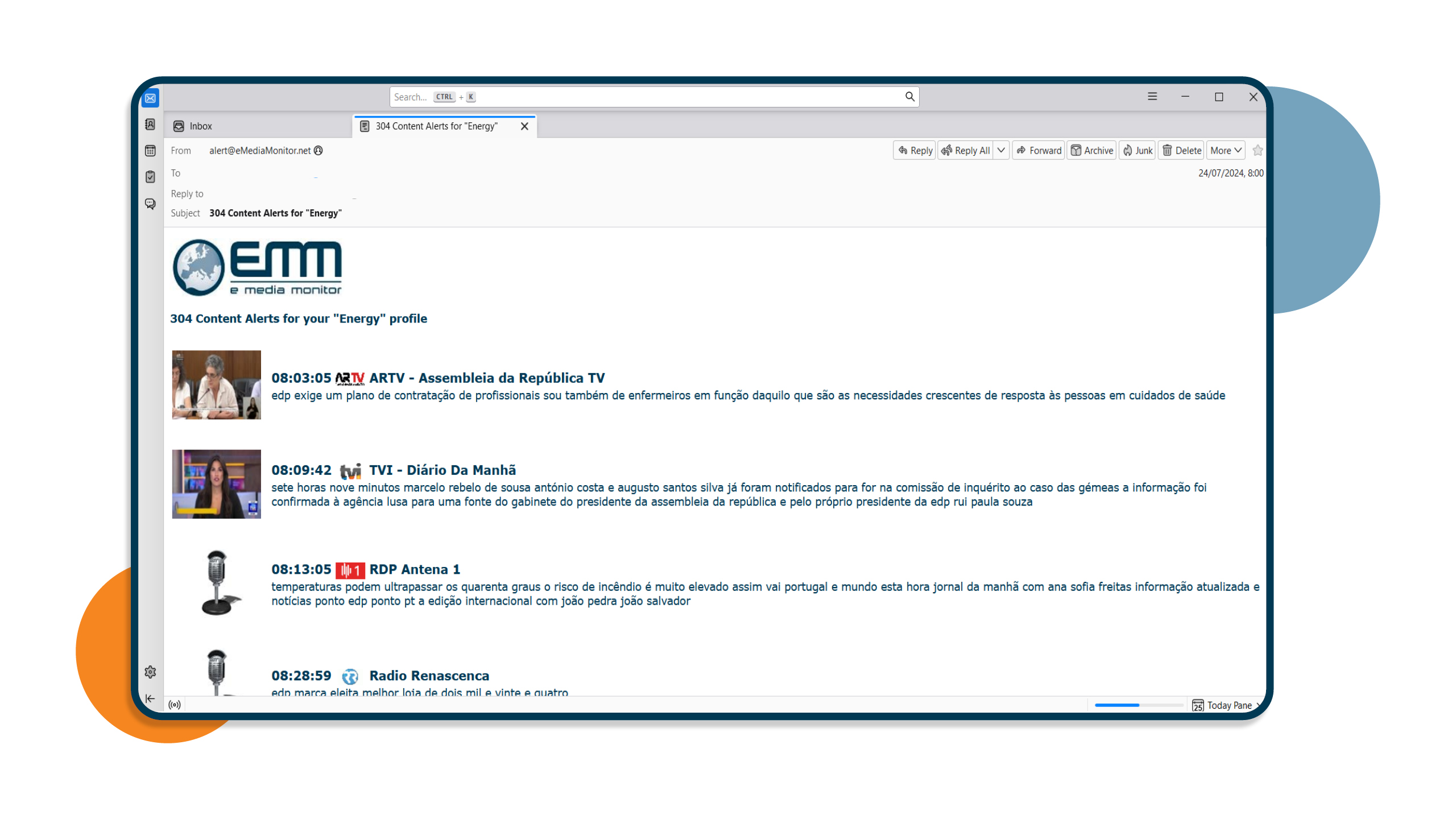 eMM's alerts for media content in sources such as TV and radio, press, online news, podcasts, web TV, and social TV help you stay informed about any mentions on topics of your interest just as they happen. Receive information in real time, gain situational awareness about your company or brand, and decide if any prompt communication or business actions are needed.